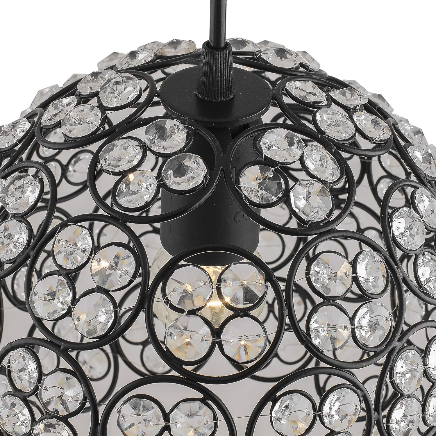 Elegant Home Decor: Transform your space with the Crystal Ball Pendant Light, a modern ceiling lamp with a black finish, perfect for living rooms, dining rooms, and stylish home decor.